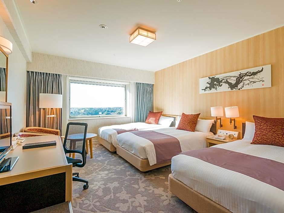 Featuring ink paintings on traditional Japanese washi paper, this more spacious room features simple Japanese-style wooden decor and carpeted floors specifically designed for this room type. Rooms feature two small double beds 47 in wide.